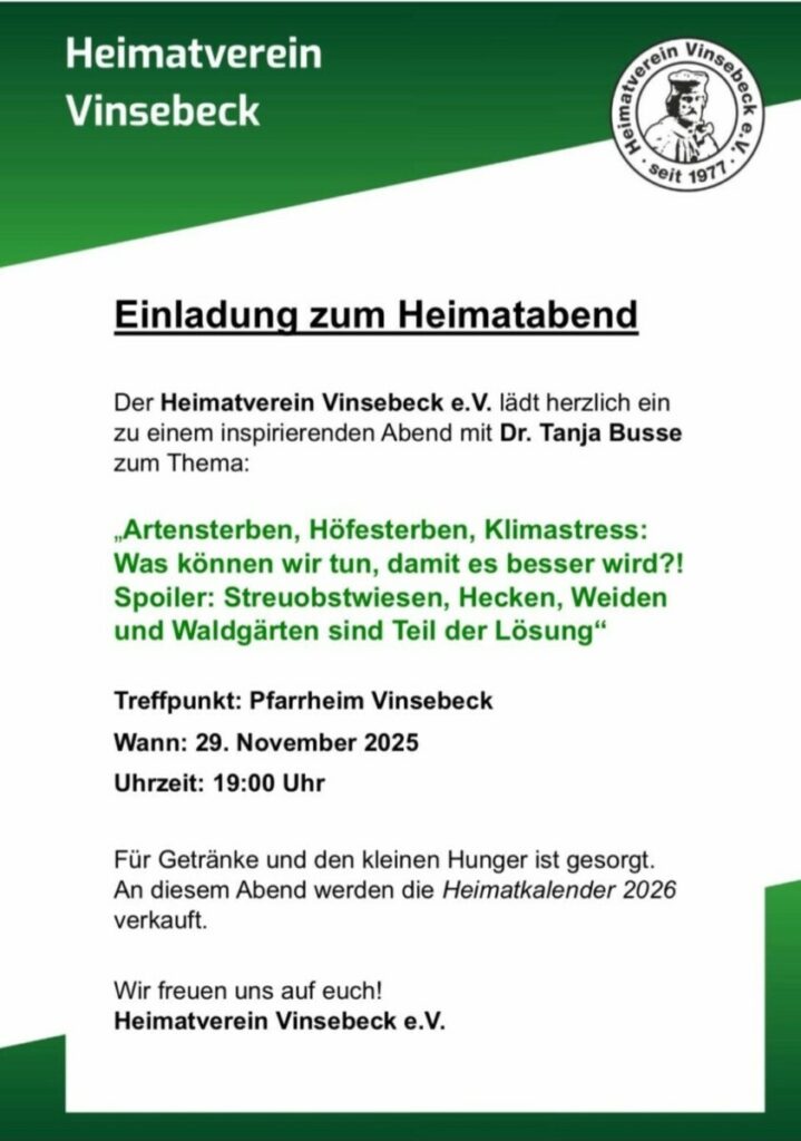 Heimatabend des Heimatvereins This event has ended Datum 29. November 2025 Zeit 19:00 Pfarrheim Hauptstraße 15, 32839 Steinheim