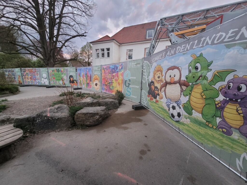 Der öd aussehende Bauzaun an Grundschule veranlasste einer Verschönerung.